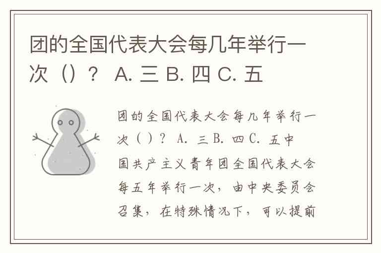 团的全国代表大会每几年举行一次()? A. 三 B. 四 C. 五