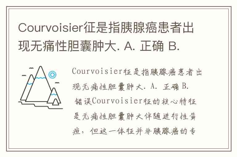 Courvoisier征是指胰腺癌患者出现无痛性胆囊肿大. A. 正确 B. 错误
