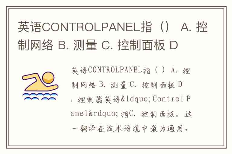 英语CONTROLPANEL指() A. 控制网络 B. 测量 C. 控制面板 D. 控制器