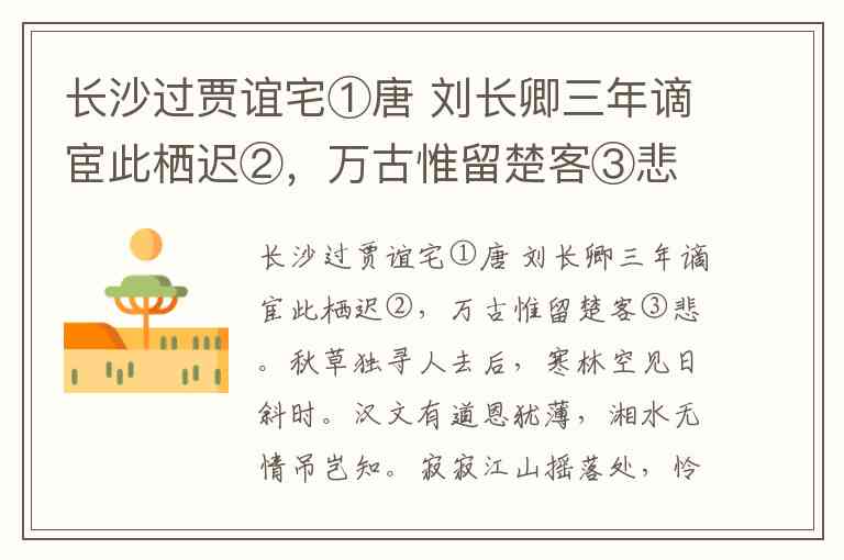 全诗以贾谊遭遇为镜,折射中唐文人的悲剧命运,含蓄表达对现实的不满。这种“借古人酒杯浇心中块垒”的笔法,正是唐诗咏史怀古诗的典型特征。