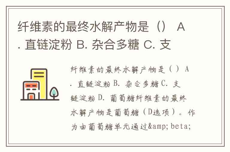 纤维素的最终水解产物是() A. 直链淀粉 B. 杂合多糖 C. 支链淀粉 D. 葡萄糖