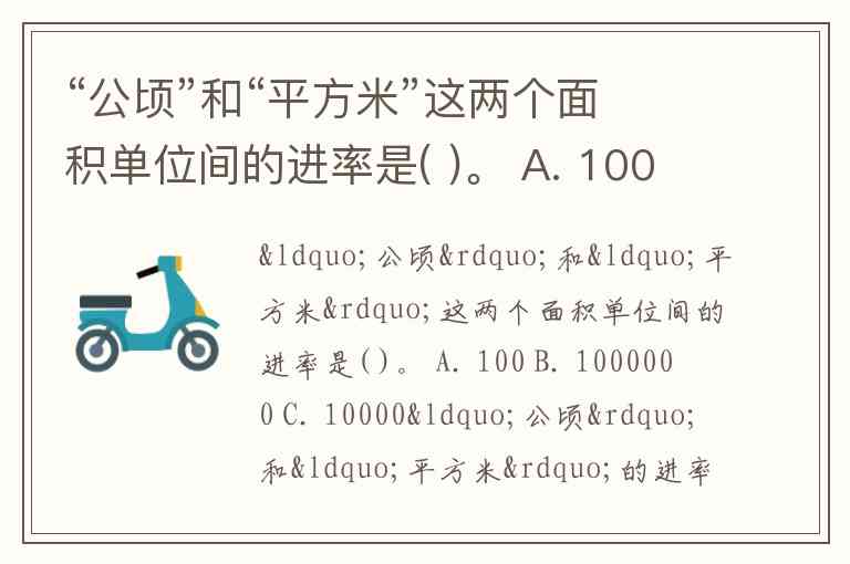 “公顷”和“平方米”这两个面积单位间的进率是( )。 A. 100 B. 1000000 C. 10000