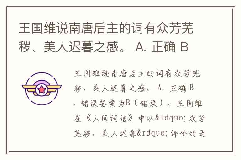 王国维说南唐后主的词有众芳芜秽、美人迟暮之感。 A. 正确 B. 错误