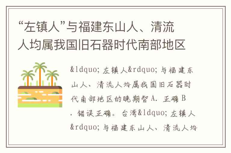 正确。台湾“左镇人”与福建东山人、清流人均属我国旧石器时代南部地区的晚期智人,这一结论得到多项考古发现和学术研究的支持。