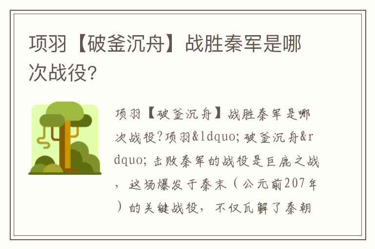 项羽【破釜沉舟】战胜秦军是哪次战役?