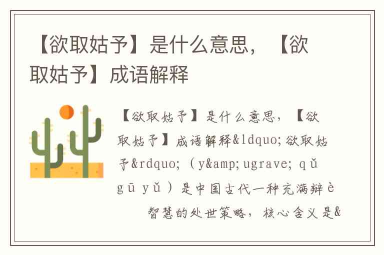 【欲取姑予】是什么意思,【欲取姑予】成语解释