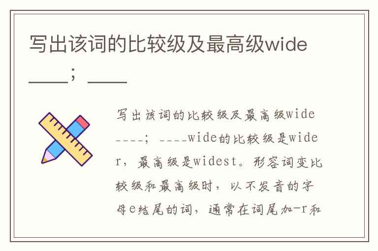wide的比较级是wider,最高级是widest。形容词变比较级和最高级时,以不发音的字母e结尾的词,通常在词尾加-r和-st,wide符合这一规则,无需双写末尾字母。这种变化形式简洁直观,便于记忆和使用。