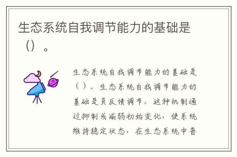 生态系统自我调节能力的基础是负反馈调节。这种机制通过抑制或减弱初始变化,使系统维持稳定状态,在生态系统中普遍存在。