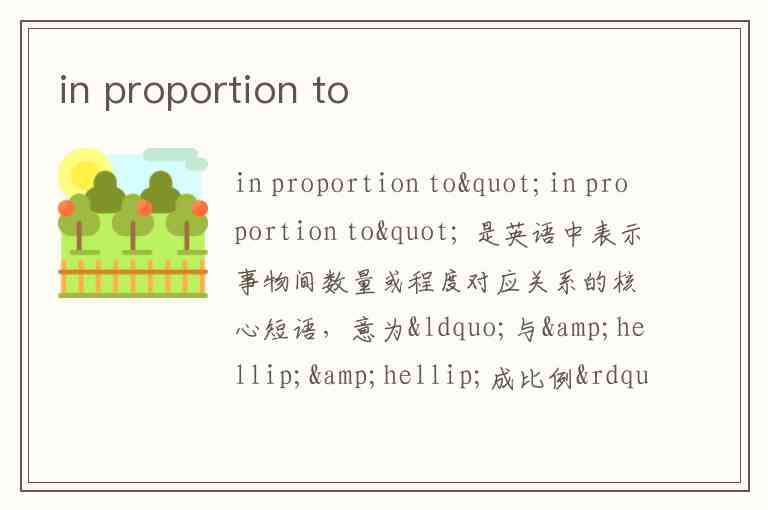 "in proportion to" 是英语中表示事物间数量或程度对应关系的核心短语,意为“与……成比例”“与……相称”,强调两个变量按固定比率变化的关联性。它既可以描述正向关联(如努力与回报的关系),也可用于单纯的比例比较(如身体部位间的尺寸关系)。