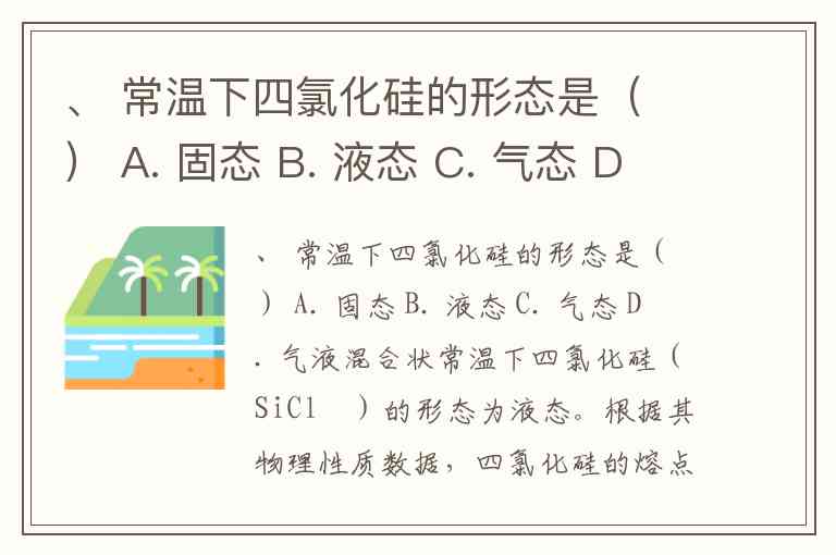 、 常温下四氯化硅的形态是( ) A. 固态 B. 液态 C. 气态 D. 气液混合状