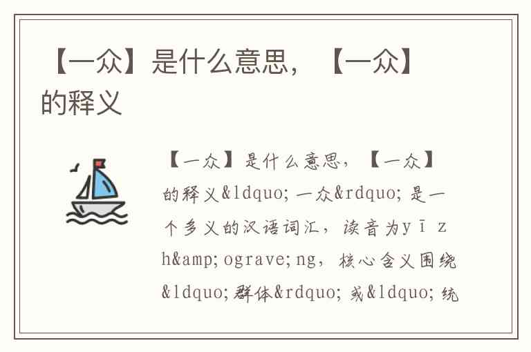 “一众”是一个多义的汉语词汇,读音为yī zhòng,核心含义围绕“群体”或“统一”展开,具体用法需结合语境判断。