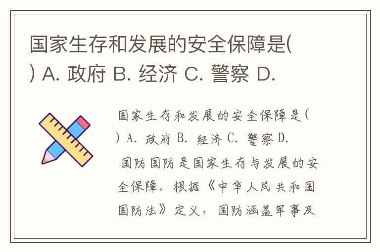 国家生存和发展的安全保障是( ) A. 政府 B. 经济 C. 警察 D. 国防