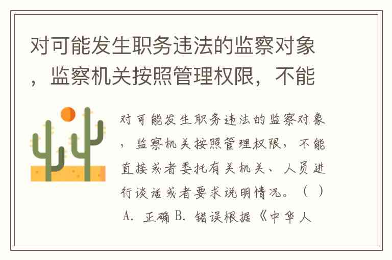 对可能发生职务违法的监察对象,监察机关按照管理权限,不能直接或者委托有关机关、人员进行谈话或者要求说明情况。( ) A. 正确 B. 错误