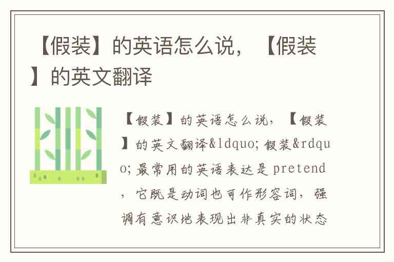 “假装”最常用的英语表达是 pretend,它既是动词也可作形容词,强调有意识地表现出非真实的状态或行为。例如:She pretended not to hear me(她假装没听见我说话)。