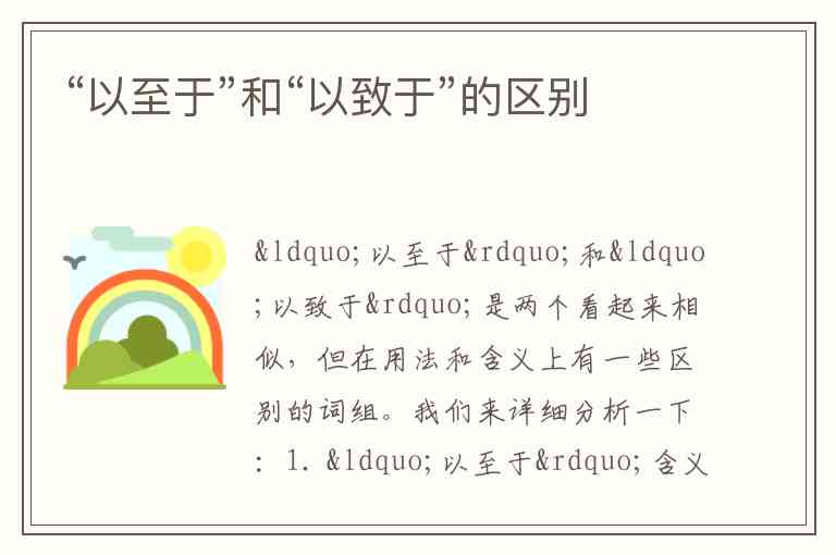 “以至于”和“以致于”是两个看起来相似,但在用法和含义上有一些区别的词组。我们来详细分析一下:1. “以至于”