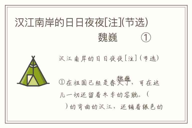 [注]1951年1月,抗美援朝第四阶段战役打响,中国人民志愿军在朝鲜半岛汉江南岸坚守防御作战,战斗艰苦异常,最终取得胜利。魏巍在战地采访后深受感动,挥笔写下了这篇文章。汉江:朝鲜半岛的一条河流。