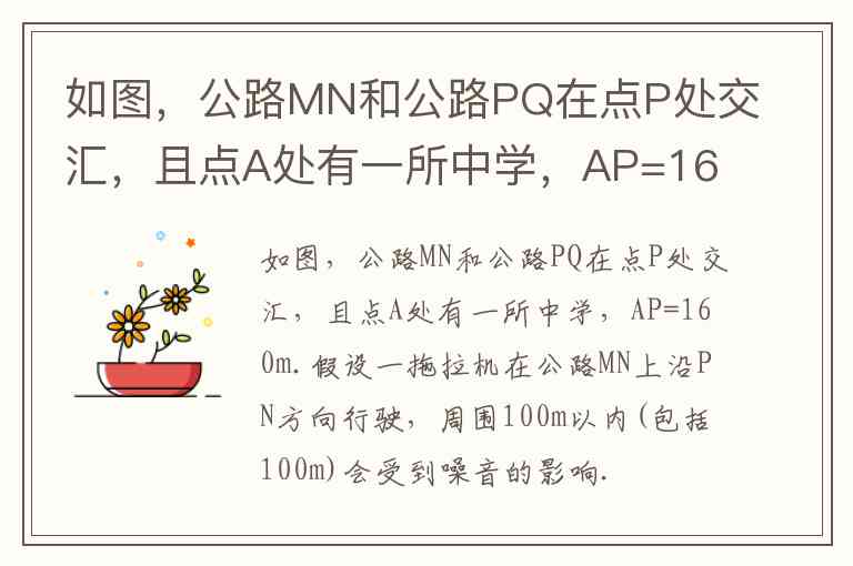 点A处有一所中学,AP=160m.假设一拖拉机在公路MN上沿PN方向行驶,周围100m以内(包括100m)会受到噪音的影响.