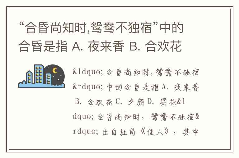 “合昏尚知时,鸳鸯不独宿”中的合昏是指 A. 夜来香 B. 合欢花 C. 夕颜 D. 昙花