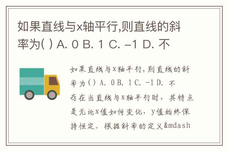 如果直线与x轴平行,则直线的斜率为( ) A. 0 B. 1 C. -1 D. 不存在