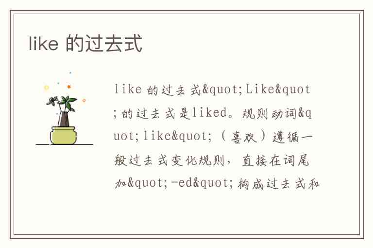 动词过去式的变化主要有规则和不规则两种。规则动词通常加"-ed",而不规则动词如"go"(went)、"eat"(ate)则需要单独记忆。"Like"属于规则变化,因此其过去式和过去分词均为"liked",发音为/laɪkt/。