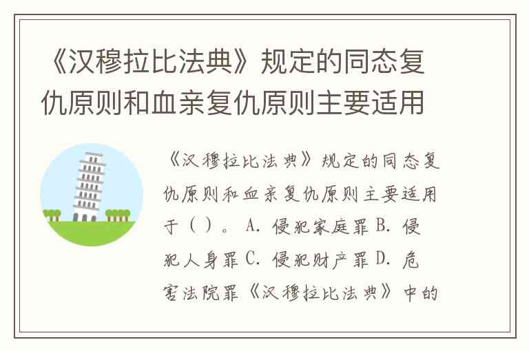 《汉穆拉比法典》规定的同态复仇原则和血亲复仇原则主要适用于()。 A. 侵犯家庭罪 B. 侵犯人身罪 C. 侵犯财产罪 D. 危害法院罪