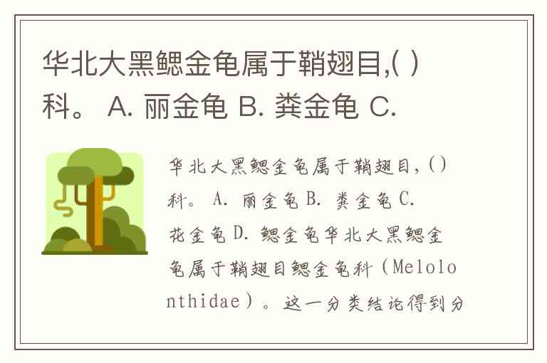 华北大黑鳃金龟属于鞘翅目,( )科。 A. 丽金龟 B. 粪金龟 C. 花金龟 D. 鳃金龟
