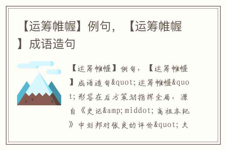 【运筹帷幄】例句,【运筹帷幄】成语造句