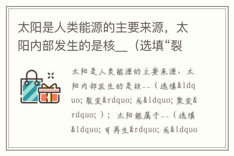 太阳是人类能源的主要来源,太阳内部发生的是核__(选填“裂变”或“聚变”);太阳能属于__(选填“可再生”或“不可再生”);人类的常用能源中__属于二次能源.
