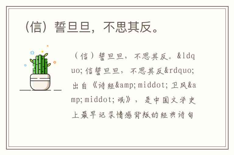 这句诗的生命力在于其永恒的现实映射。当现代人用“信誓旦旦”描述政治承诺或商业宣传时,仍是在重复三千年前那个女子的困境:语言的重量永远轻于行动的轨迹。而“不思其反”的绝望呐喊,至今仍在提醒我们:所有轻易出口的“旦旦”之誓,都可能在时间的“反”噬中,沦为“亦已焉哉”的决绝注脚。