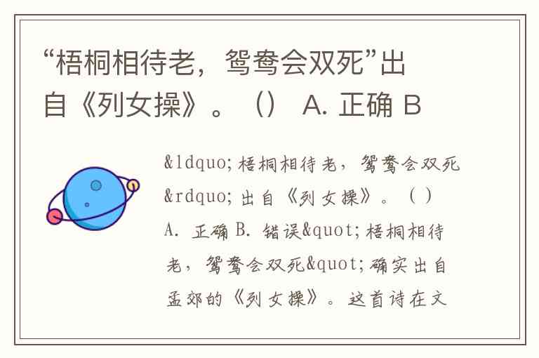 “梧桐相待老,鸳鸯会双死”出自《列女操》。() A. 正确 B. 错误