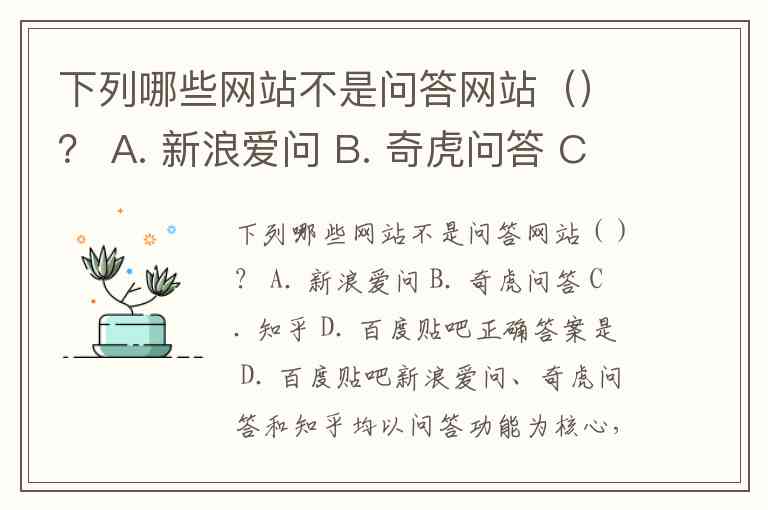 下列哪些网站不是问答网站()? A. 新浪爱问 B. 奇虎问答 C. 知乎 D. 百度贴吧