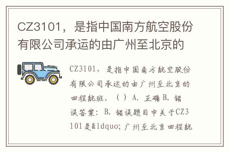CZ3101,是指中国南方航空股份有限公司承运的由广州至北京的回程航班。() A. 正确 B. 错误