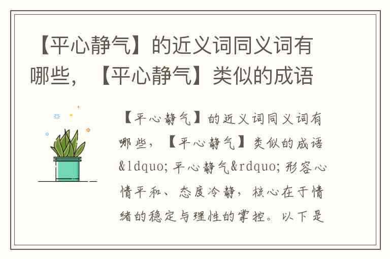 【平心静气】的近义词同义词有哪些,【平心静气】类似的成语