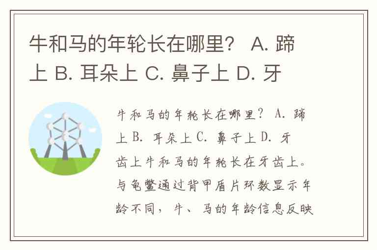 牛和马的年轮长在哪里? A. 蹄上 B. 耳朵上 C. 鼻子上 D. 牙齿上