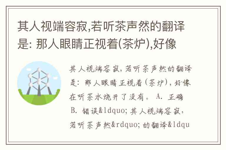 其人视端容寂,若听茶声然的翻译是: 那人眼睛正视着(茶炉),好像在听茶水烧开了没有。 A. 正确 B. 错误