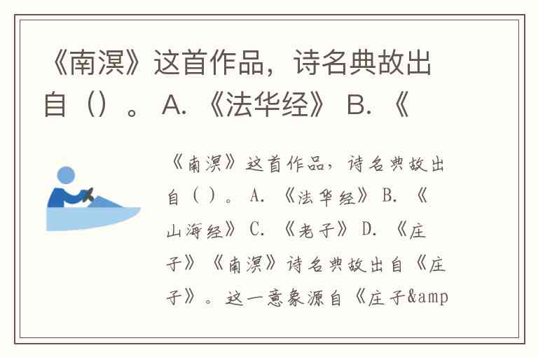 《南溟》这首作品,诗名典故出自()。 A. 《法华经》 B. 《山海经》 C. 《老子》 D. 《庄子》