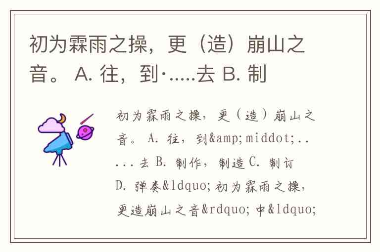 初为霖雨之操,更(造)崩山之音。 A. 往,到·.....去 B. 制作,制造 C. 制订 D. 弹奏