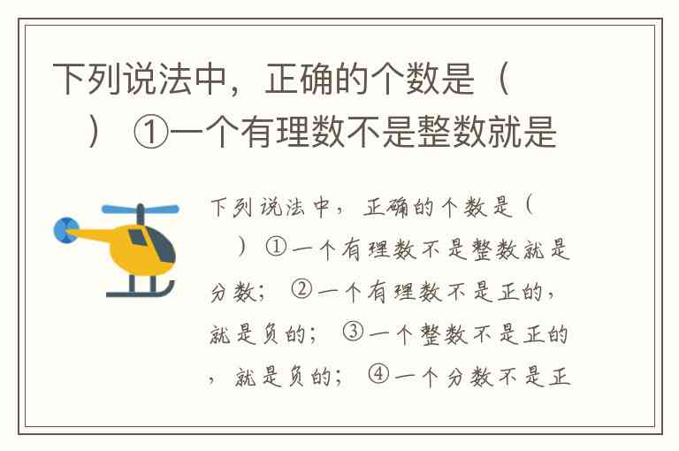 要判断关于有理数的四个说法正确与否,需结合有理数、整数、分数的定义及分类逐一分析:
