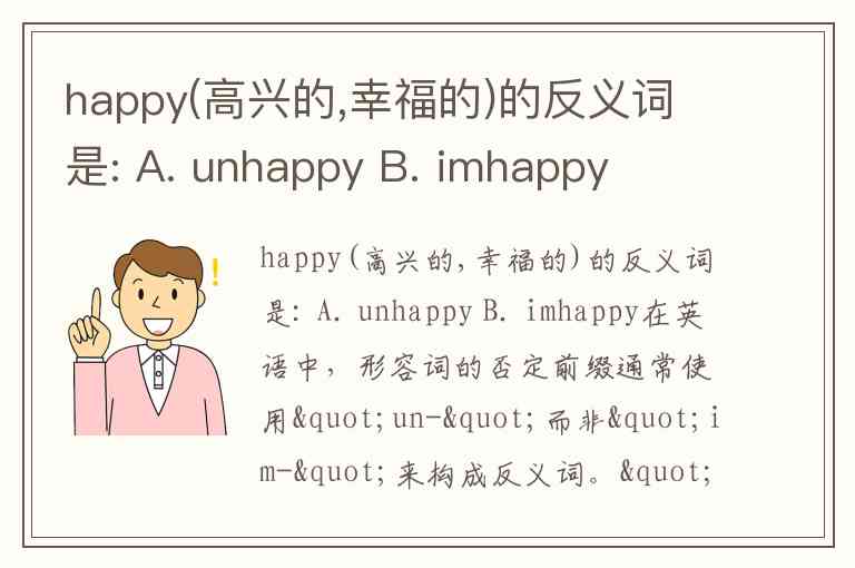happy(高兴的,幸福的)的反义词是: A. unhappy B. imhappy