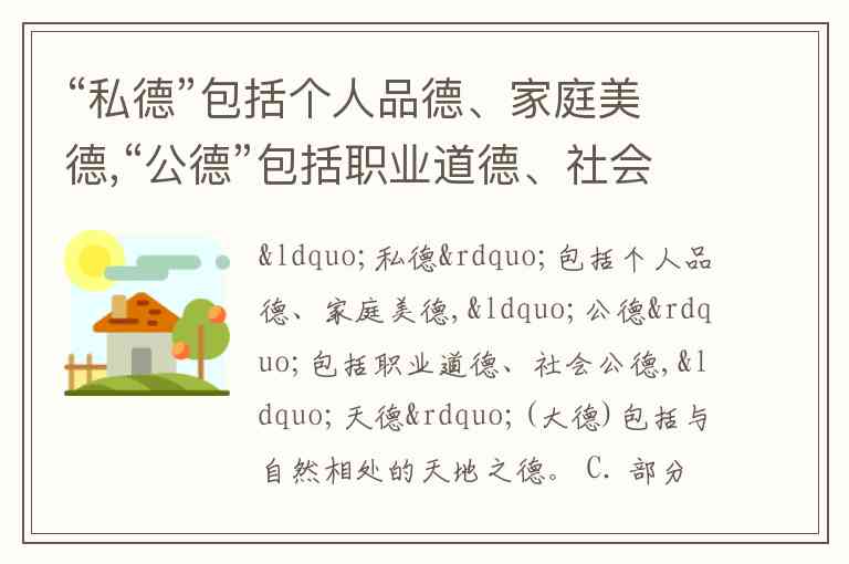“私德”包括个人品德、家庭美德,“公德”包括职业道德、社会公德,“天德”(大德)包括与自然相处的天地之德。 C. 部分对 D. 部分错 A. 正确 B. 错误