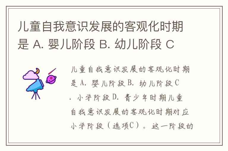 儿童自我意识发展的客观化时期是 A. 婴儿阶段 B. 幼儿阶段 C. 小学阶段 D. 青少年时期