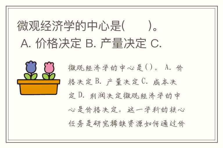 微观经济学的中心是( )。 A. 价格决定 B. 产量决定 C. 成本决定 D. 利润决定