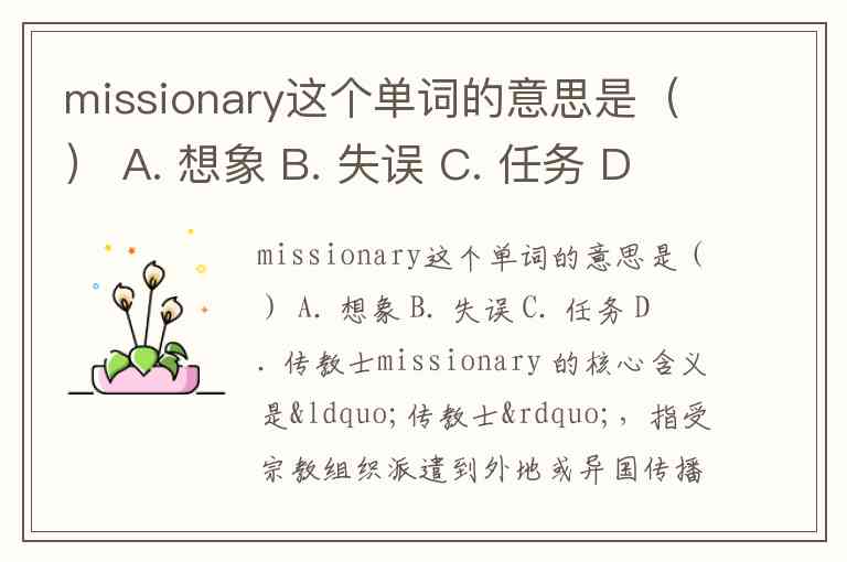 missionary这个单词的意思是() A. 想象 B. 失误 C. 任务 D. 传教士