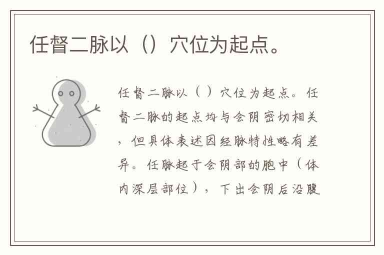 任督二脉的起点均与会阴密切相关,但具体表述因经脉特性略有差异。任脉起于会阴部的胞中(体内深层部位),下出会阴后沿腹胸正中线上行至承浆穴;督脉则以长强穴(尾骨尖下方的体表穴位)为起点,沿脊柱上行至头顶龈交穴。两者虽起点位置相近,却体现了"阴脉之海"与"阳脉之海"的不同循行规律——任脉从体内胞中浅出体表,督脉直接起于体表穴位,最终在口唇部交会形成循环。这种"一源三岐"的起始特征(任、督、冲脉同源于胞中),正是中医经络学说对人体生命能量循环的经典诠释。