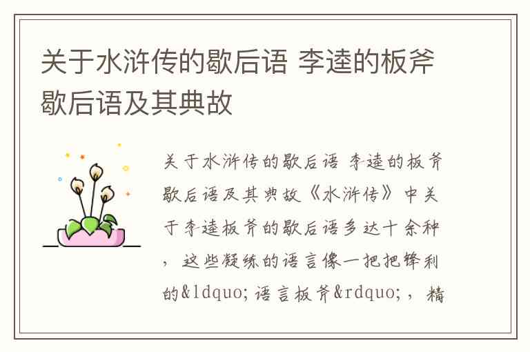 关于水浒传的歇后语 李逵的板斧歇后语及其典故