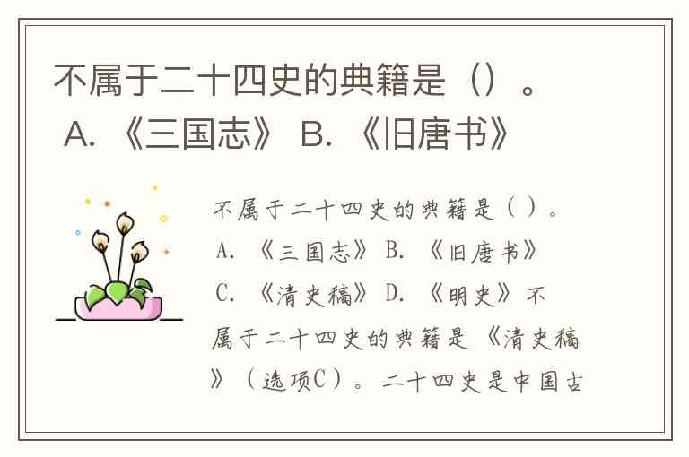 不属于二十四史的典籍是()。 A. 《三国志》 B. 《旧唐书》 C. 《清史稿》 D. 《明史》
