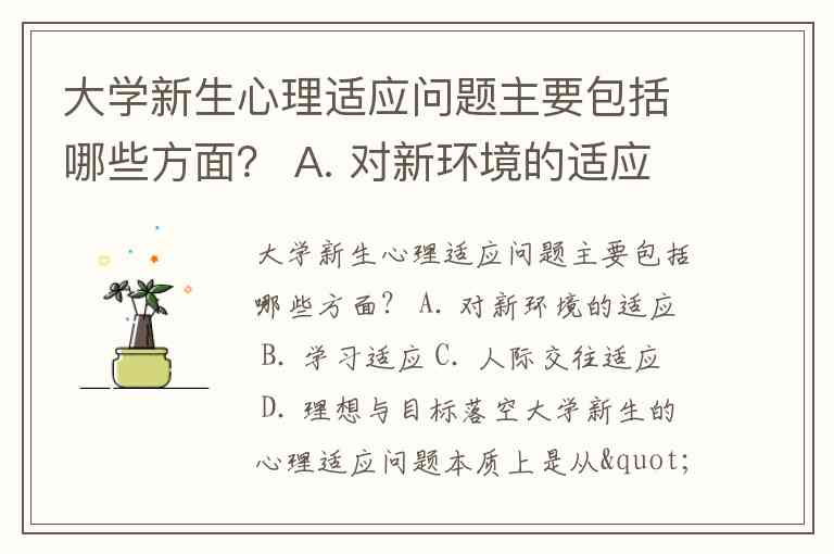 大学新生心理适应问题主要包括哪些方面? A. 对新环境的适应 B. 学习适应 C. 人际交往适应 D. 理想与目标落空