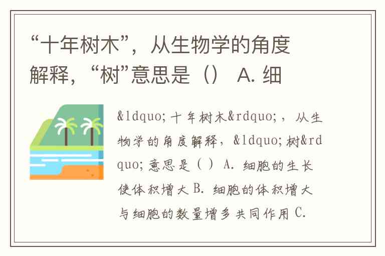 “十年树木”,从生物学的角度解释,“树”意思是() A. 细胞的生长使体积增大 B. 细胞的体积增大与细胞的数量增多共同作用 C. 细胞分裂使细胞的数量增多 D. 种子中细胞吸水膨胀所致