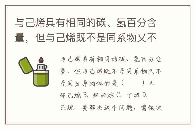 与己烯具有相同的碳、氢百分含量,但与己烯既不是同系物又不是同分异构体的是( ) A. 环己烷 B. 环丙烷 C. 丁烯 D. 己烷.