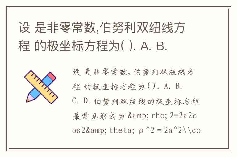 设 是非零常数,伯努利双纽线方程 的极坐标方程为( ). A. B. C. D.
